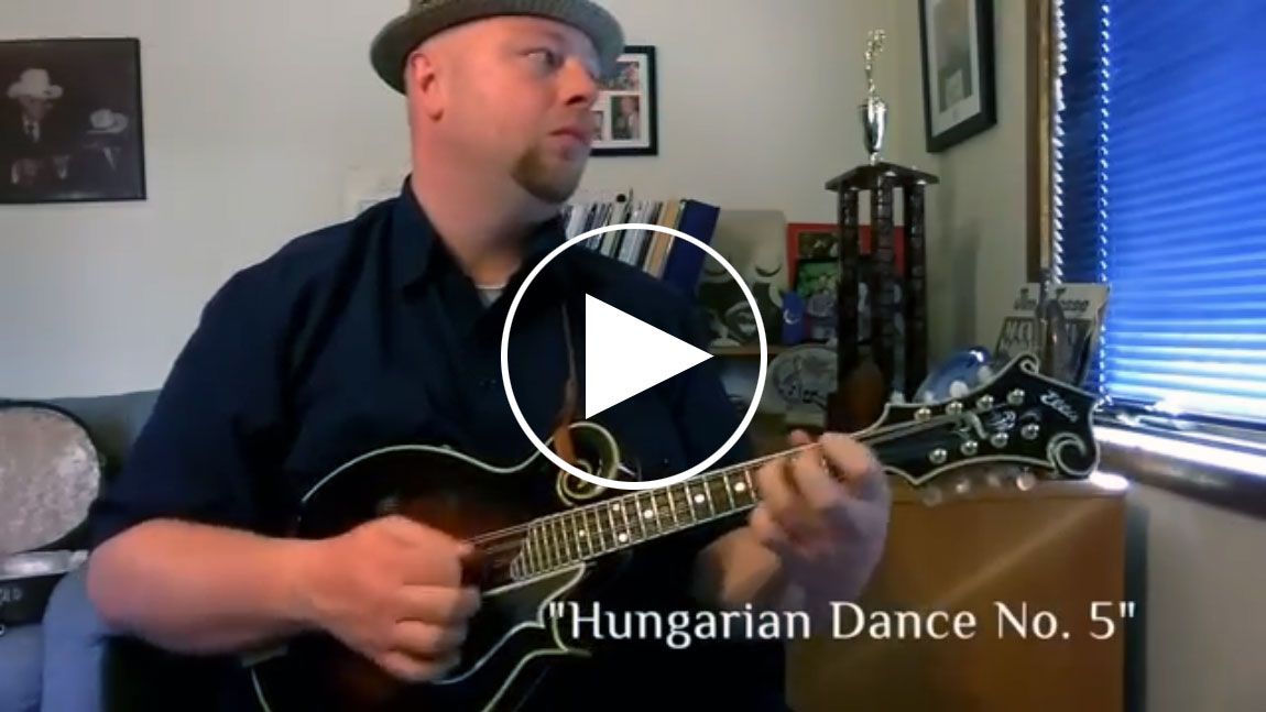Jordan plays an Ellis F5 Special that he won for winning the National Mandolin Championship in 2016.