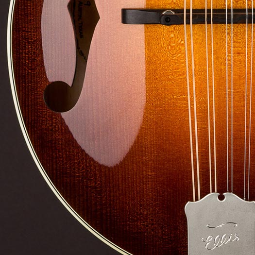 The A5 Deluxe features all of the same materials, specifications, and finishing as the A5 Special, and features silver hardware, nickel frets, and is double bound. Featuring the signature Ellis tone, the A5 Deluxe sounds unquestionably richer, sweeter, and has more sustain that the typical Loar voice found in many contemporary instruments. For the player looking for a more modern sound, the Ellis A5 Deluxe is a unique instrument with a unique voice. | • |